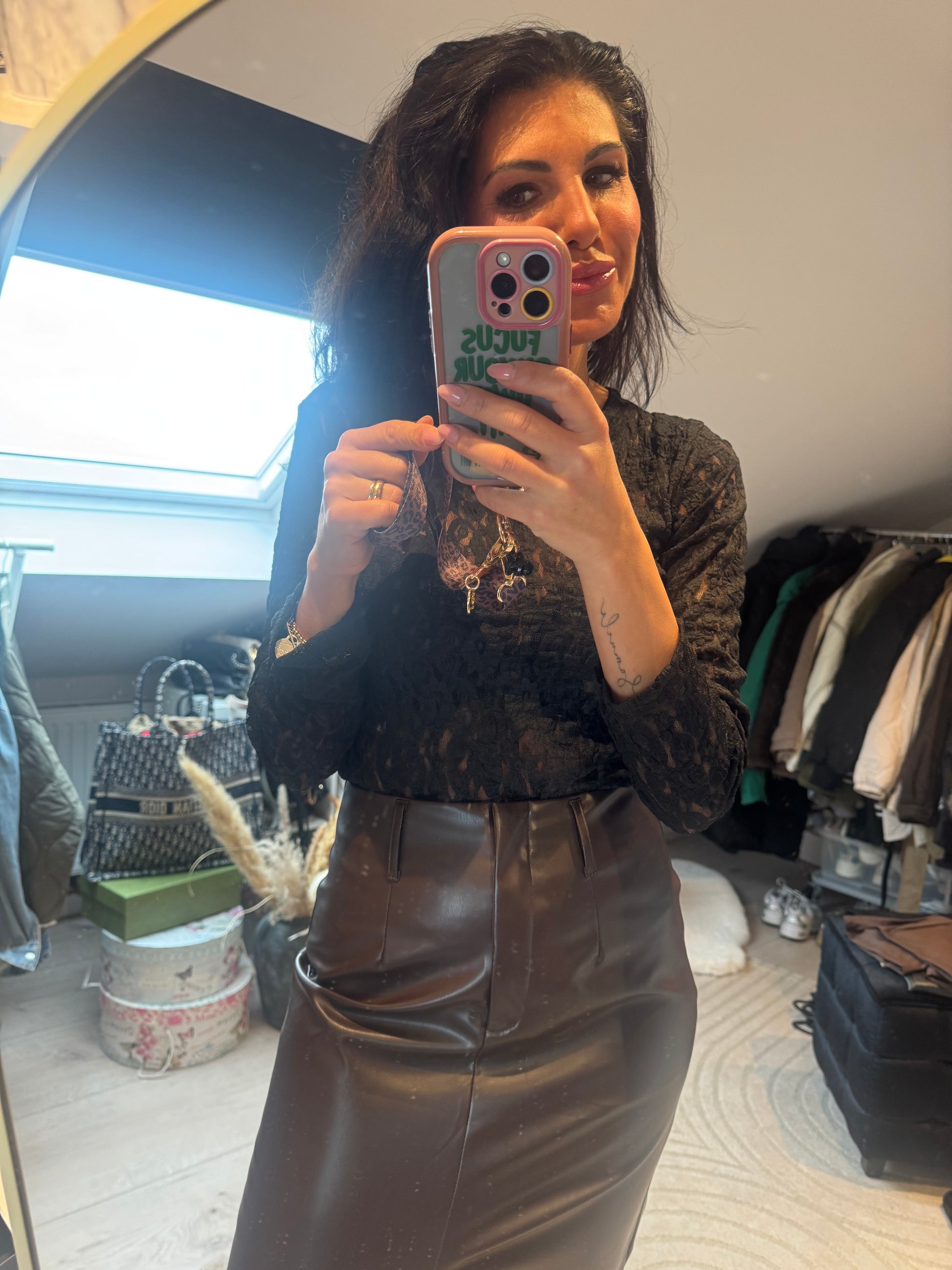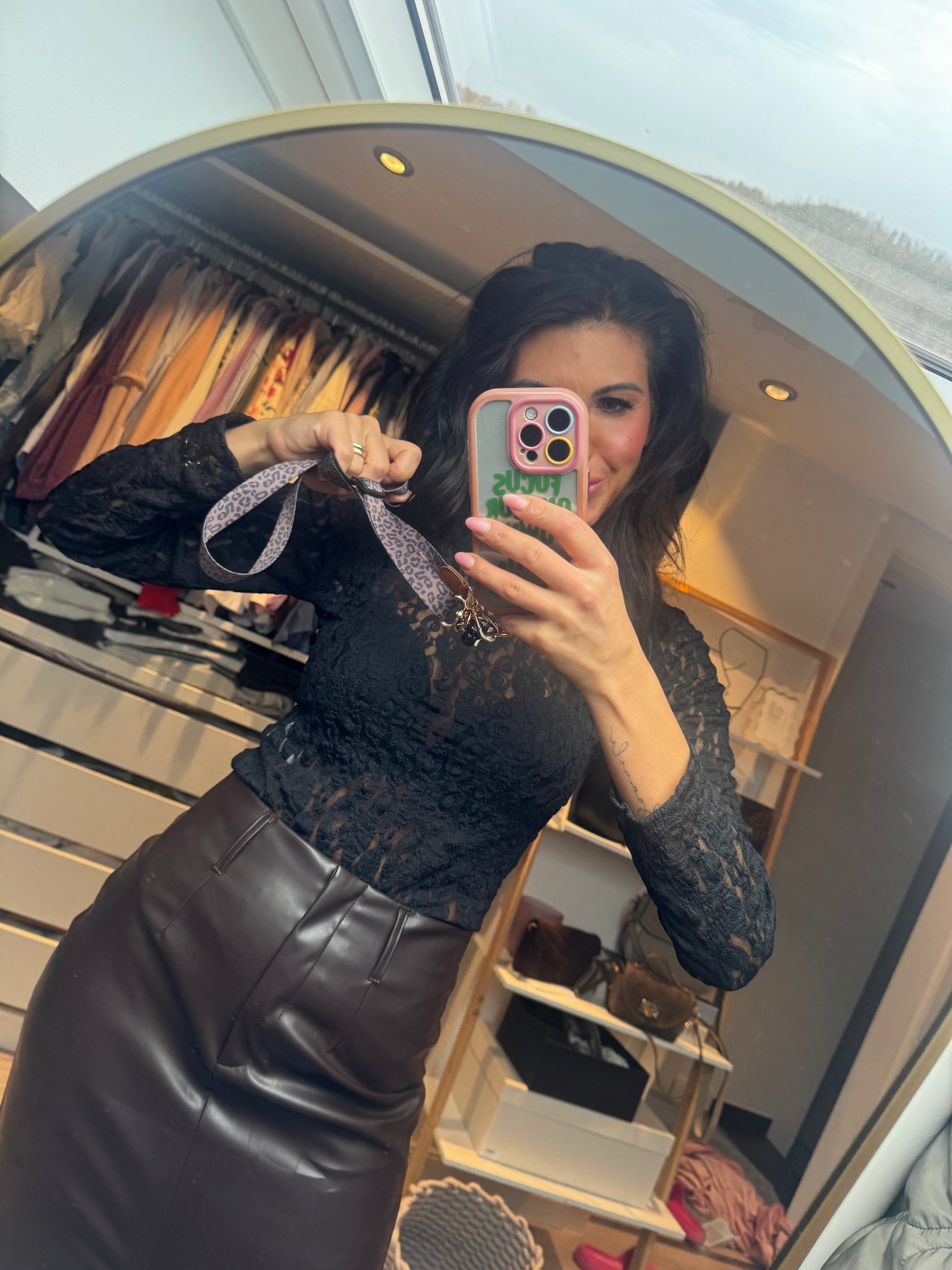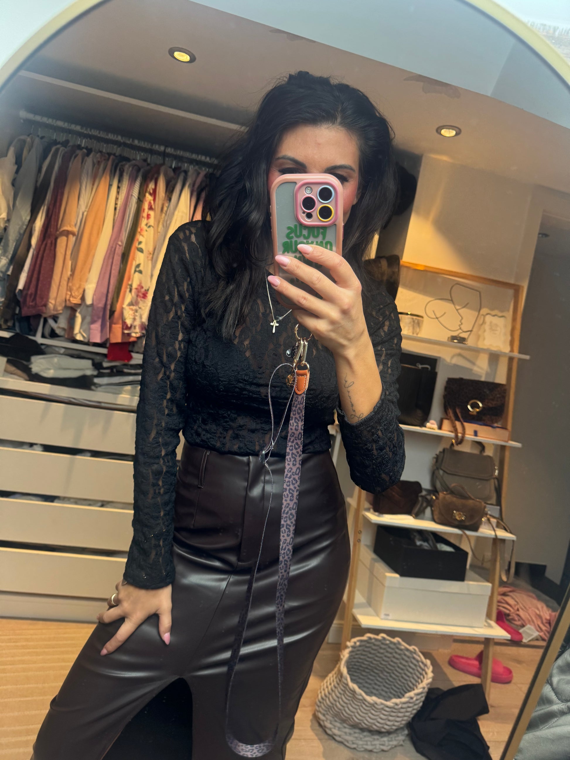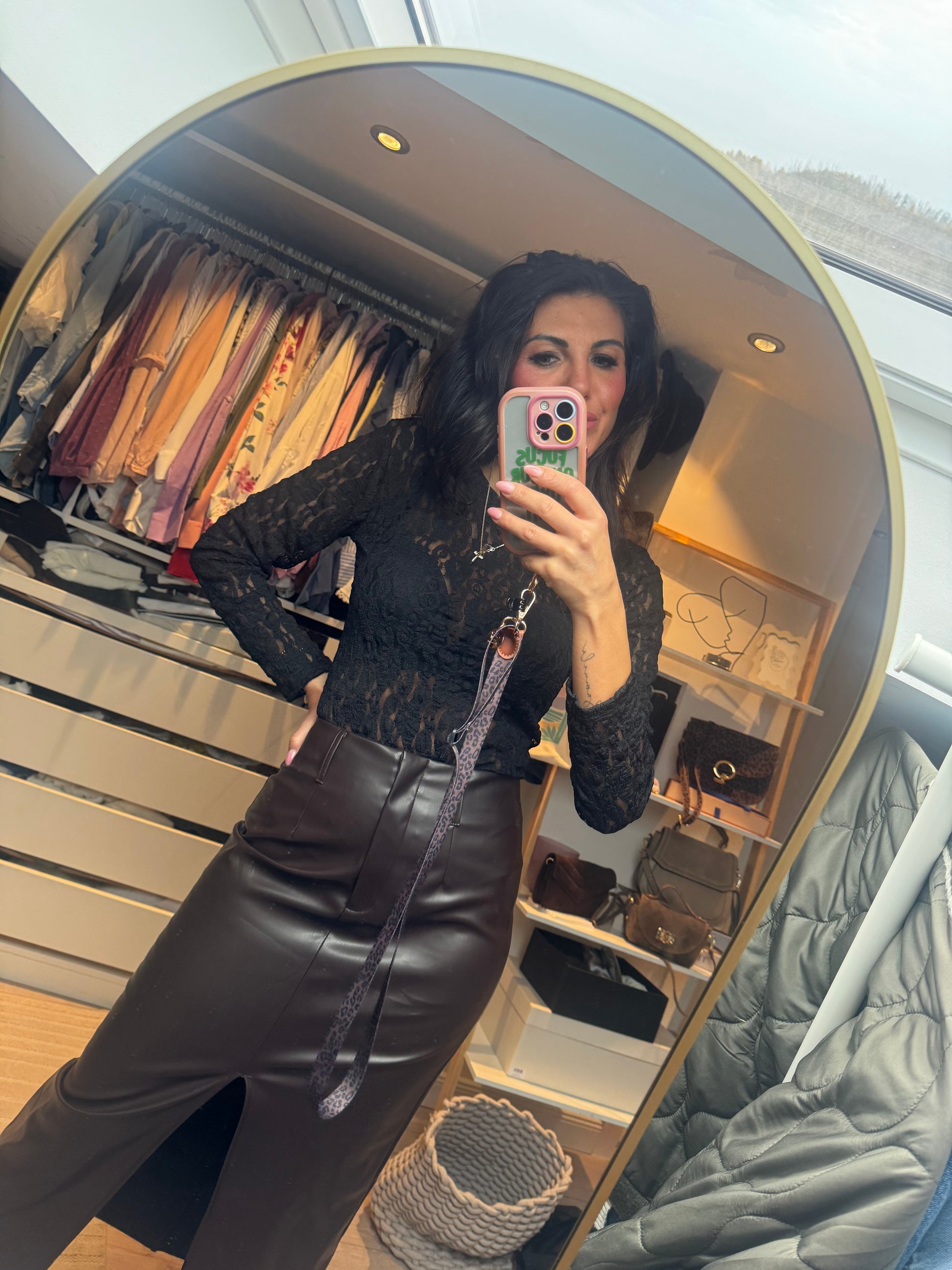 Dieser Body besteht aus feiner, schwarzer Spitze mit zartem Blumenmuster. Das Material ist leicht transparent und schmiegt sich eng an den Körper an, wodurch eine elegante, figurbetonte Silhouette entsteht. Die langen Ärmel aus reiner Spitze verleihen dem Look eine feminine und edle Note. Der Body trägt sich angenehm, wirkt hochwertig und passt perfekt zu Röcken, Hosen oder für besondere Anlässe✨