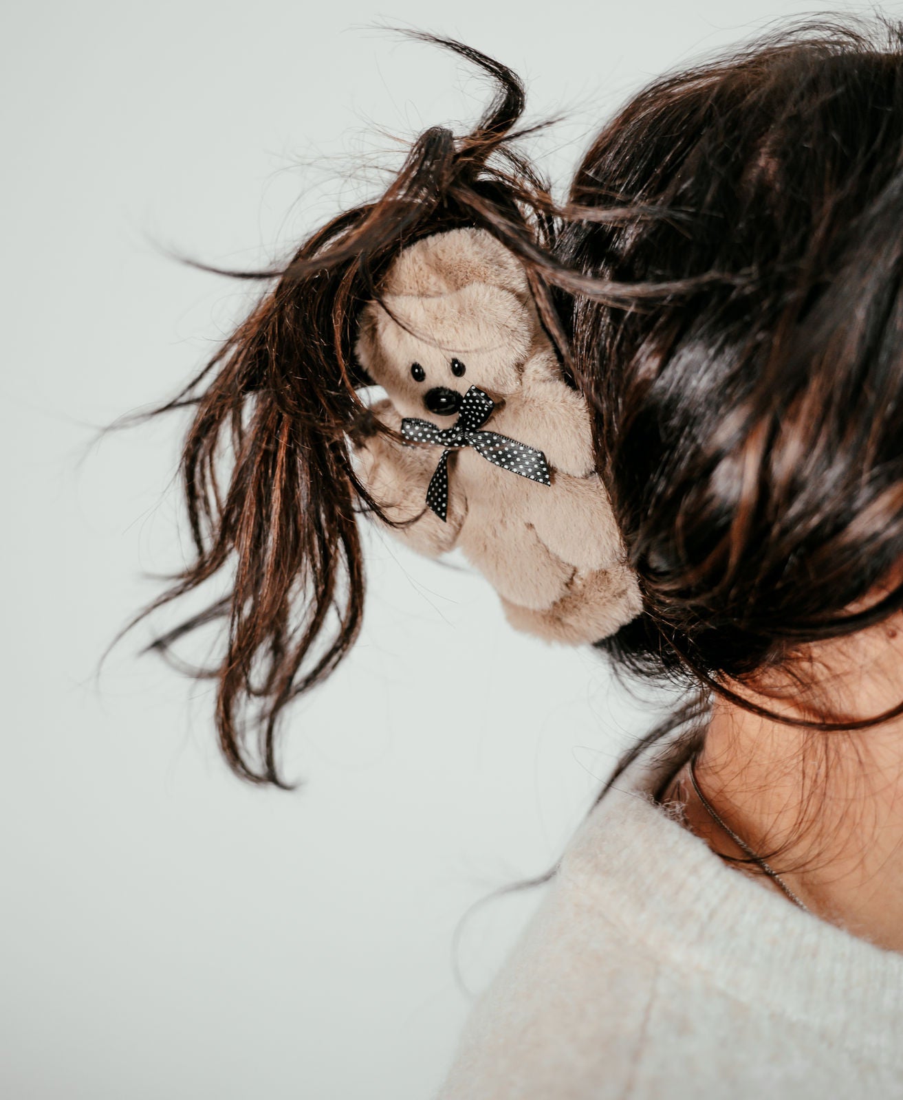 Süß, verspielt und einfach zum Verlieben. Dieses Teddy-Haaraccessoire bringt sofort gute Laune in deinen Look. Der kleine flauschige Bär mit Schleife sitzt fest im Haar und ist ein echter Hingucker, egal ob Zopf, Dutt oder Half-Up. Perfekt für Alltag, besondere Momente oder als süßes Geschenk. Weich, leicht und super angenehm zu tragen – ein kleines Detail mit ganz viel Charme✨🧸