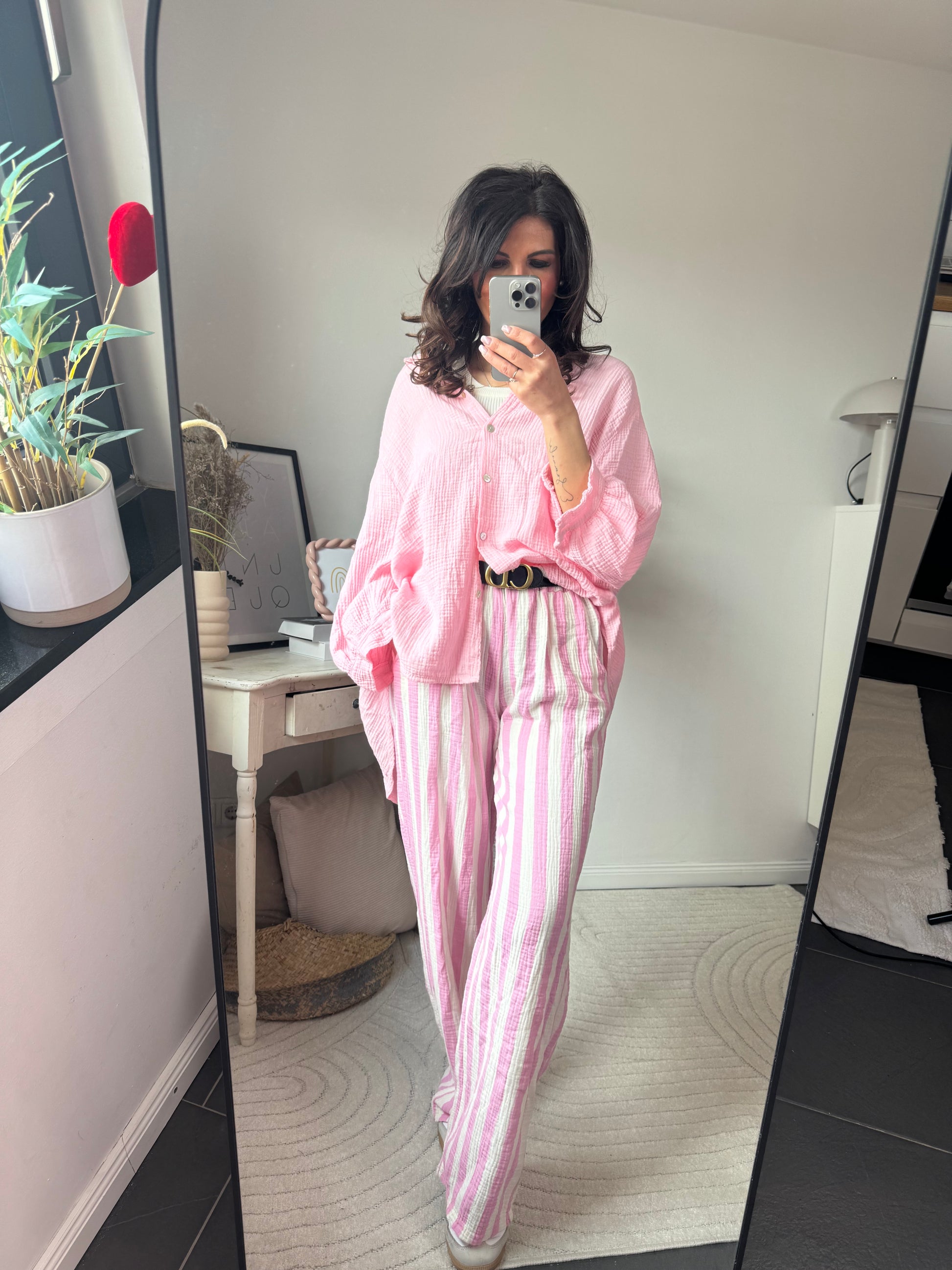 Diese leichte Hose in Rosa- und Weißtönen kombiniert bequemen Sitz mit stylischem Muster.