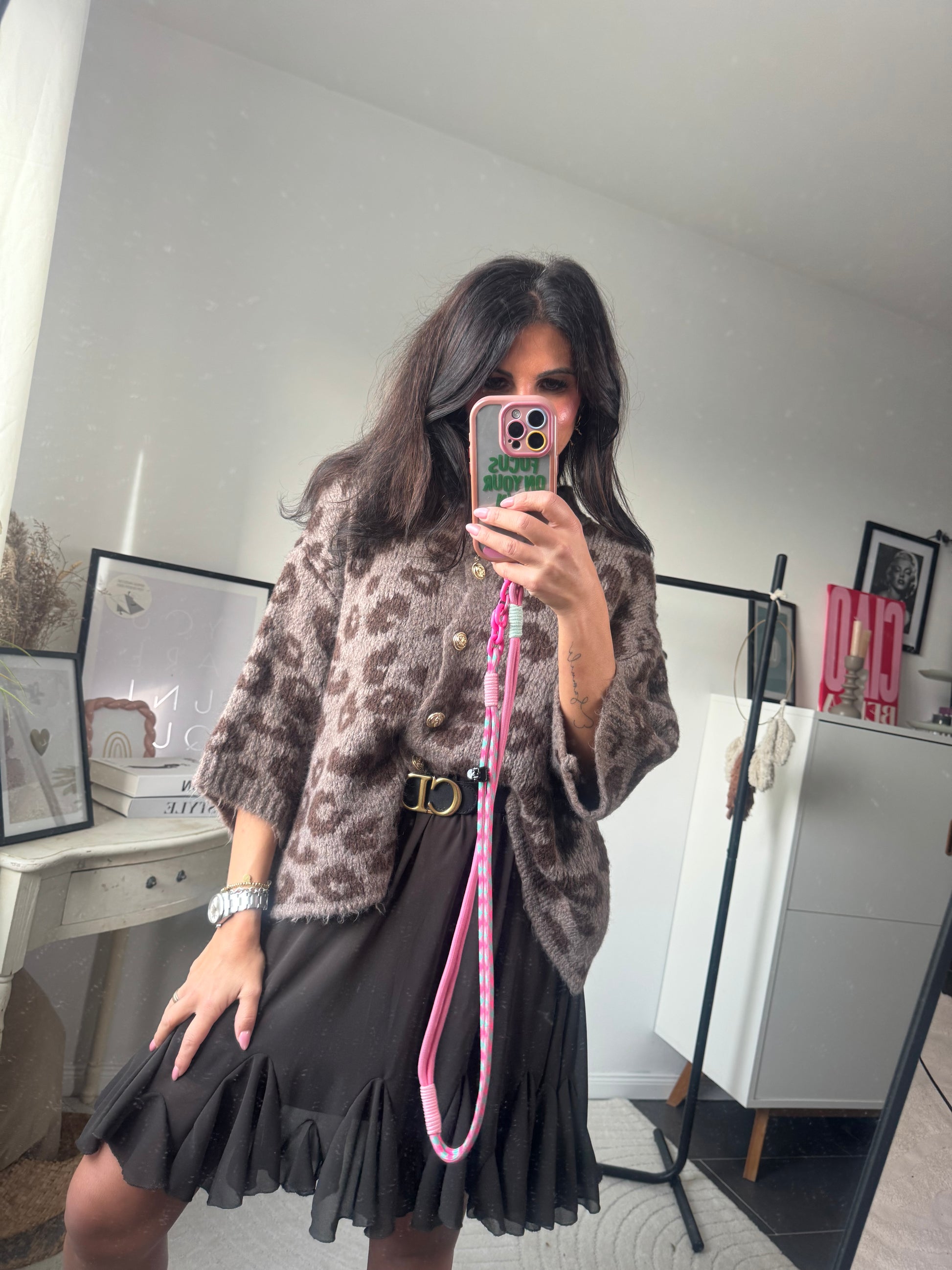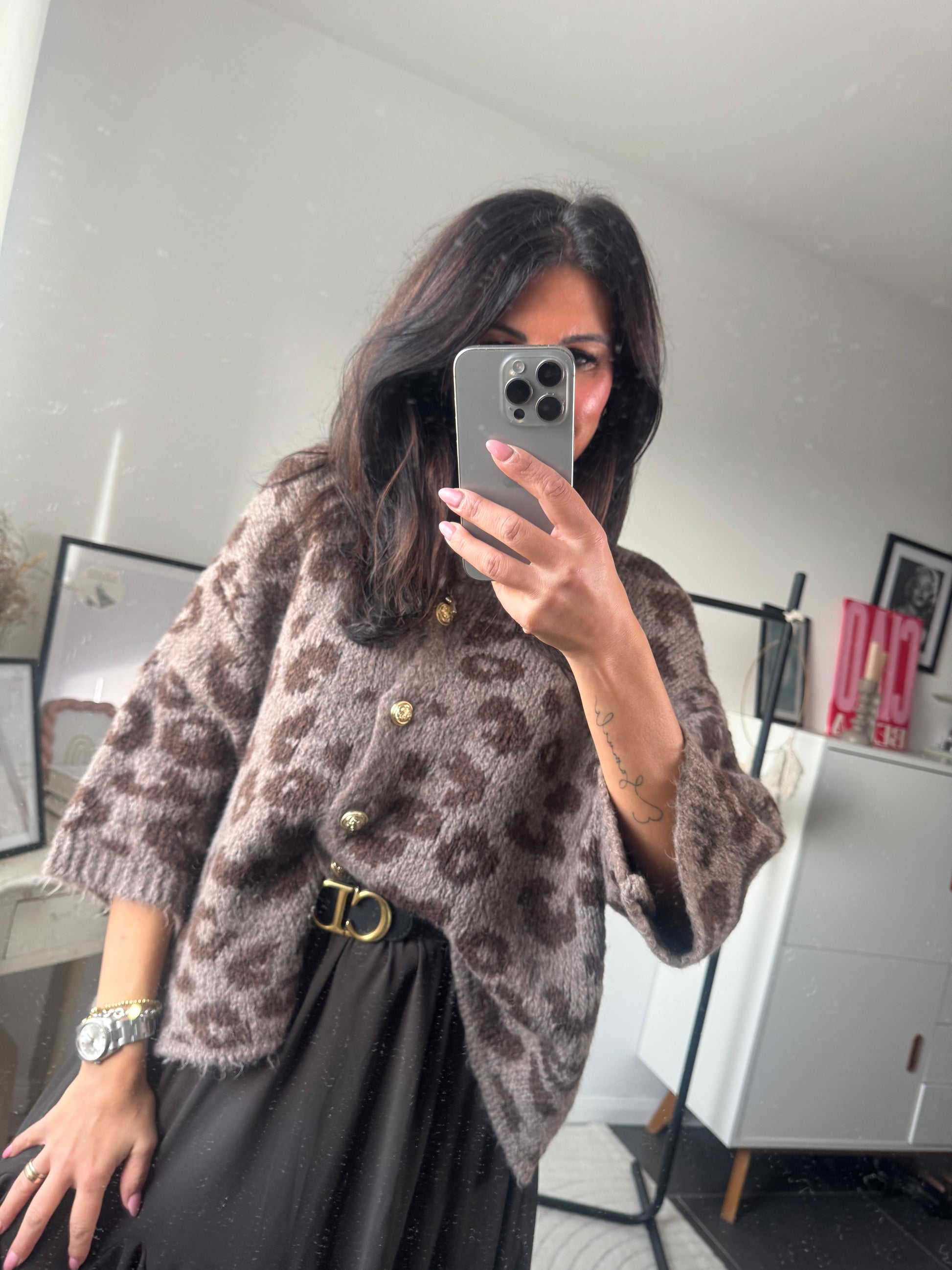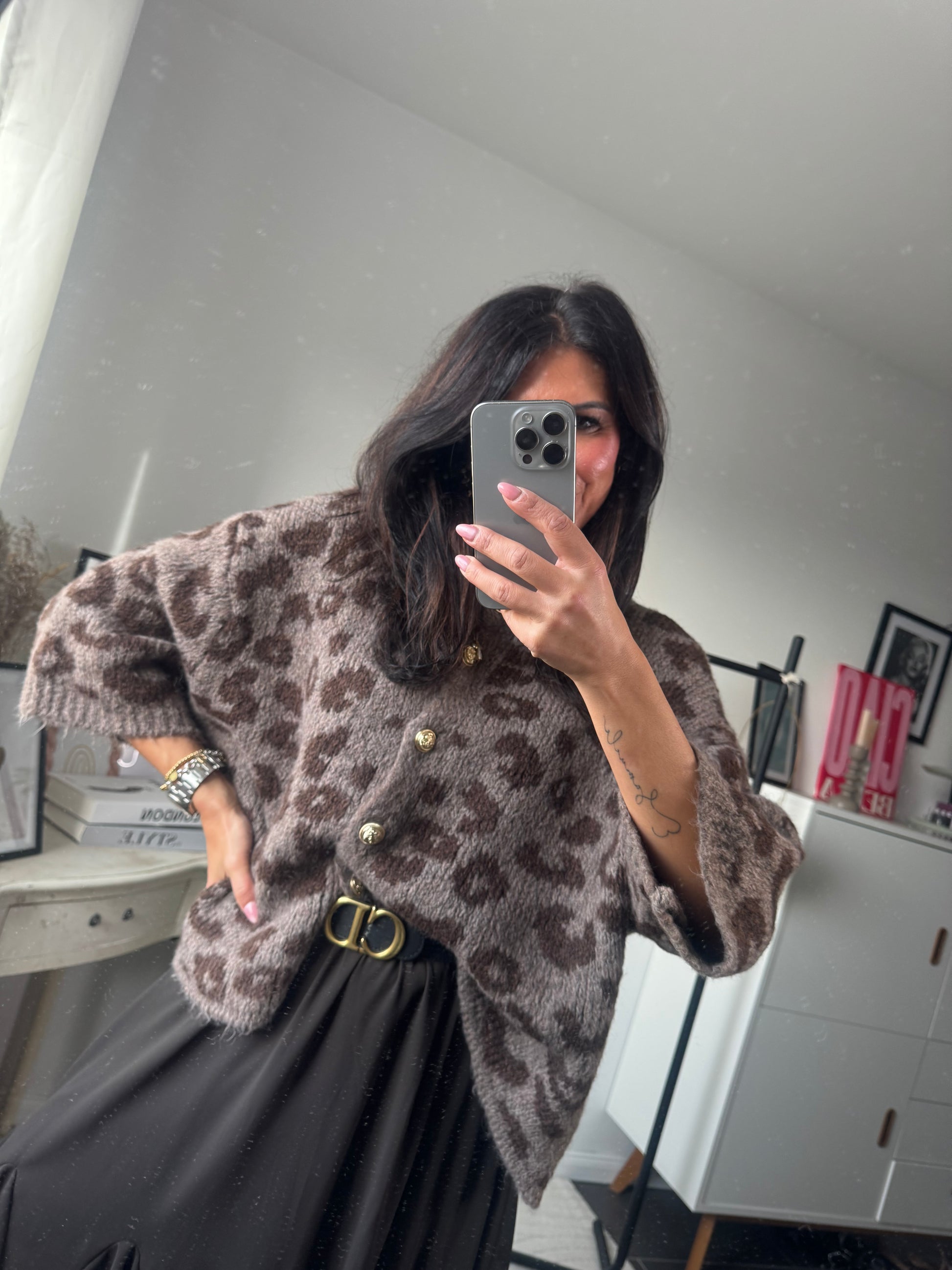 Ein weicher Strick mit gemütlichem Tragegefühl und modernem Leopardenmuster. Die goldenen Knöpfe setzen einen edlen Akzent und die lockere Passform macht ihn ideal für jeden Tag. Perfekt zu Jeans, Röcken oder als Hingucker über ein schlichtes Outfit✨