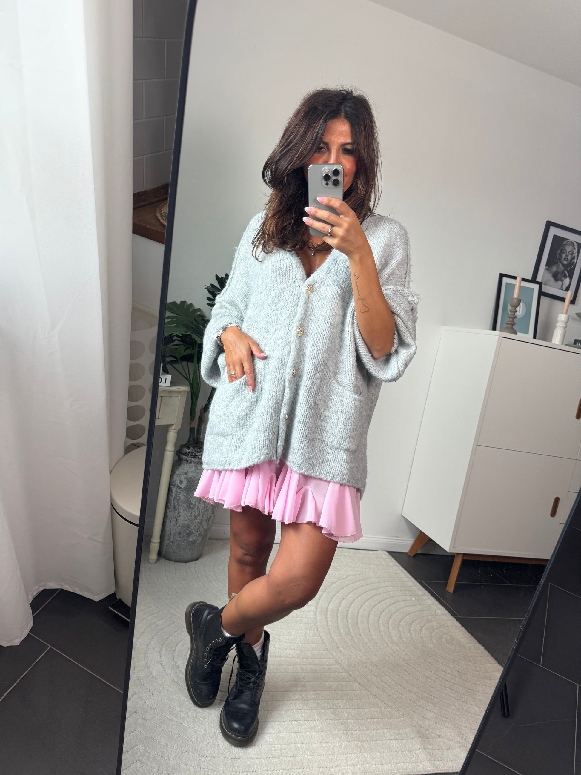 Der Rock ist ein schwingender Minirock in Bonbonrosa. Mit elastischem Bund und leichtem, fließendem Stoff wirkt er verspielt, mädchenhaft und frisch. Die Rüschen am Saum geben ihm eine extra Portion Leichtigkeit und Romantik🌸