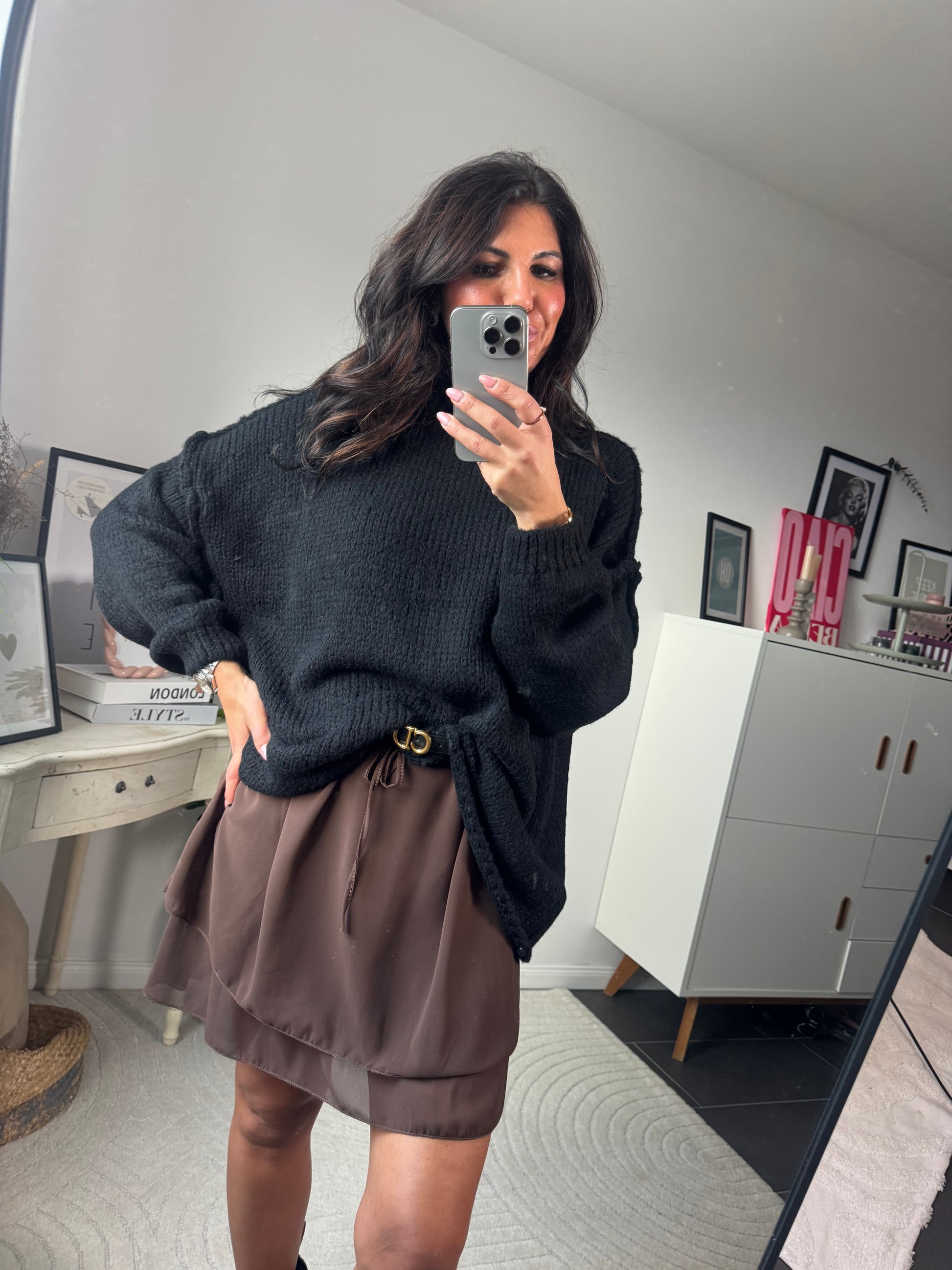 Der Rock hat einen leichten, fließenden Stoff und fällt weich in zwei Lagen übereinander. Die zarte Transparenz der oberen Lage gibt ihm einen luftigen, femininen Look. Durch den elastischen Bund sitzt er super bequem und lässt sich perfekt mit lockeren Pullis, Boots oder auch eleganten Teilen kombinieren. Ideal für einen süßen, unkomplizierten Alltagslook mit einem Hauch Eleganz✨