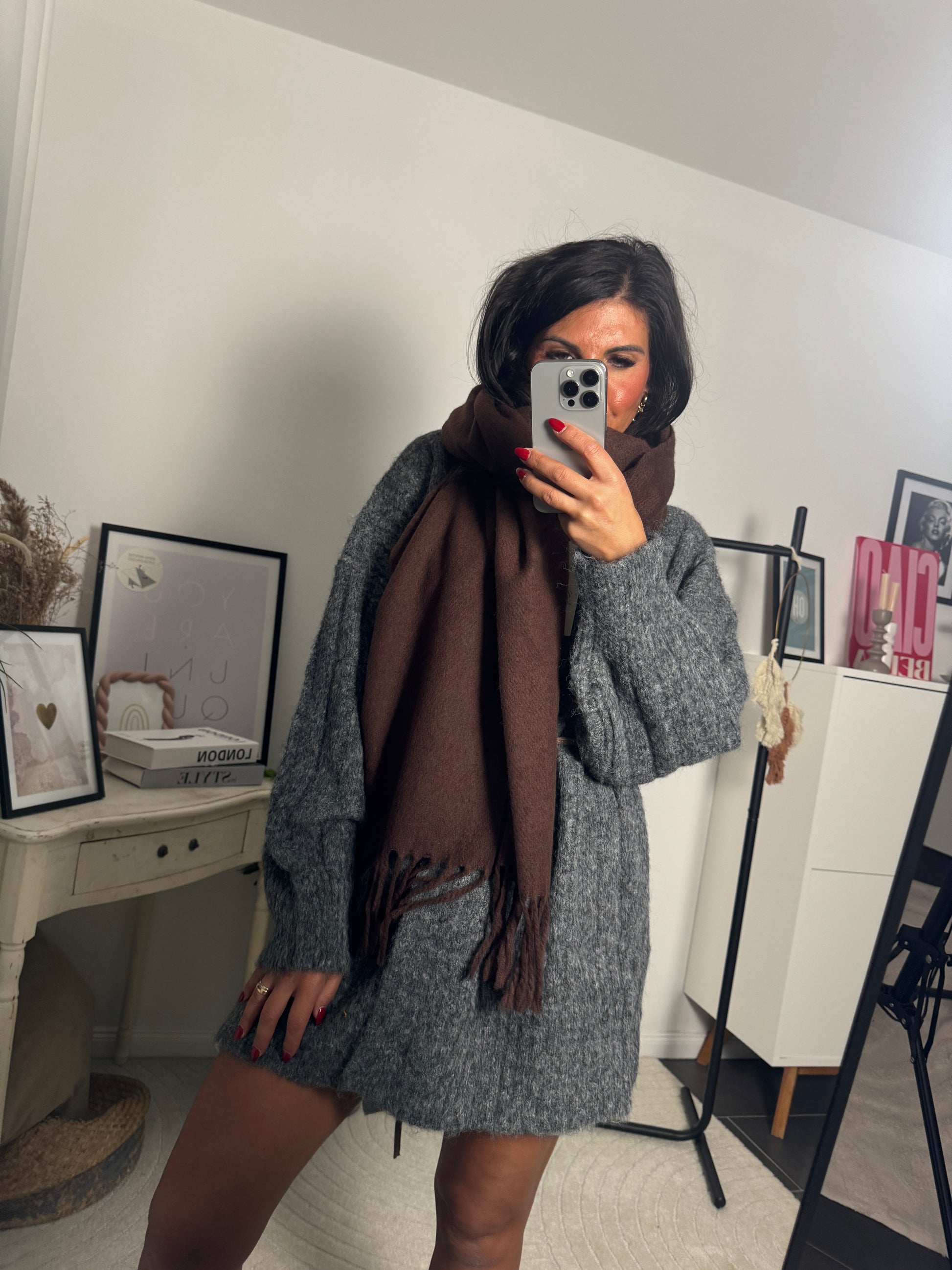 Weicher, voluminöser Schal in tiefem Schokobraun – zeitlos, elegant und unglaublich angenehm auf der Haut. Lässt sich perfekt zu Strick, Mänteln oder Jacken kombinieren und verleiht jedem Look sofort Wärme und Stil✨